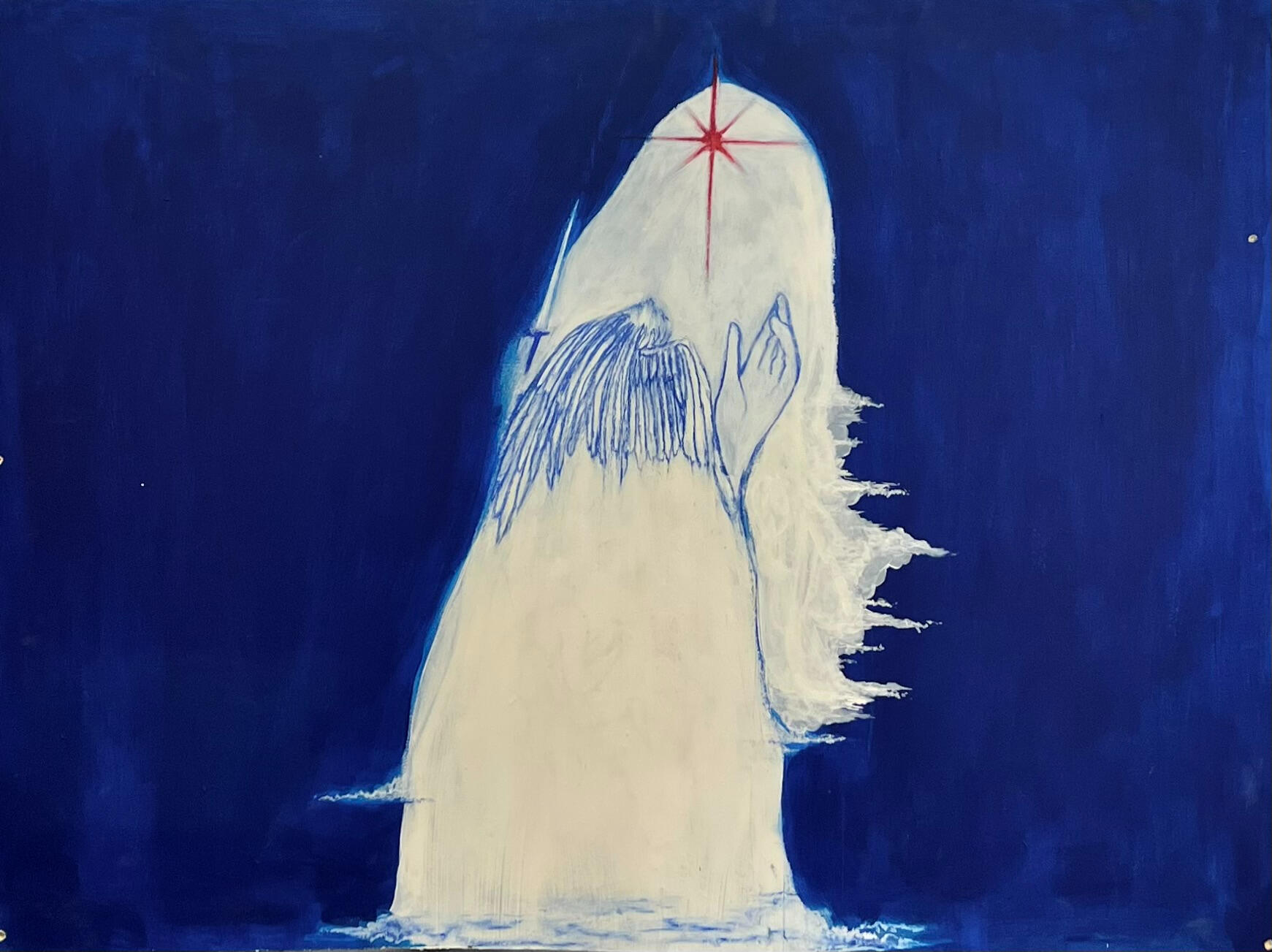 The Virgil is a deeply personal and emotionally charged painting that marks a significant turning point in my artistic journey. Created using acrylic paint and oil pastel on an MDF board, the piece features a white, almost spectral figure riding a horse across a blue background. The simplicity of the scene belies the emotional weight it carries: a sense of isolation, vulnerability, and unspoken pain.At the time of making The Virgil, I approached the work intuitively, without fully realizing how much of my inner landscape was being expressed through the act of painting. It was only after completing the piece that I came to understand its profound emotional resonance. The figure's whiteness — almost ghost-like — and the vast blue background collectively evoke a state of emotional exile, a journey through invisible wounds of betrayal and emotional suppression.The working process was fluid yet intense. I used acrylic paint for its fast-drying nature, allowing me to build up layers of blue in varied tonalities, creating depth and an atmosphere of suspended time. The oil pastel was then introduced to sketch and emphasize the figure and the horse, their forms emerging almost like memories surfacing from the depths. This layering technique, combining the quickness of acrylics with the tactile, expressive quality of oil pastel, allowed me to access raw emotions without overthinking — enabling the subconscious to take the lead.The title The Virgil references the idea of guidance through difficult terrains. Like Virgil in Dante's Divine Comedy, the painting represents an invisible guide leading the way through a personal underworld — a confrontation with suppressed emotions, loss, and the pain of experiences that were difficult to express in words. In this sense, The Virgil is not just an artwork but a threshold: a passageway from silent suffering into visible, tangible acknowledgment.Ultimately, The Virgil became the work that revealed to me the true power of painting — not merely as visual representation, but as a way of processing, externalizing, and healing. It opened the door to further exploration of emotion through color, materiality, and abstraction, setting the foundation for all my later works where the emotional undercurrent remains central, but the approach continues to evolve.